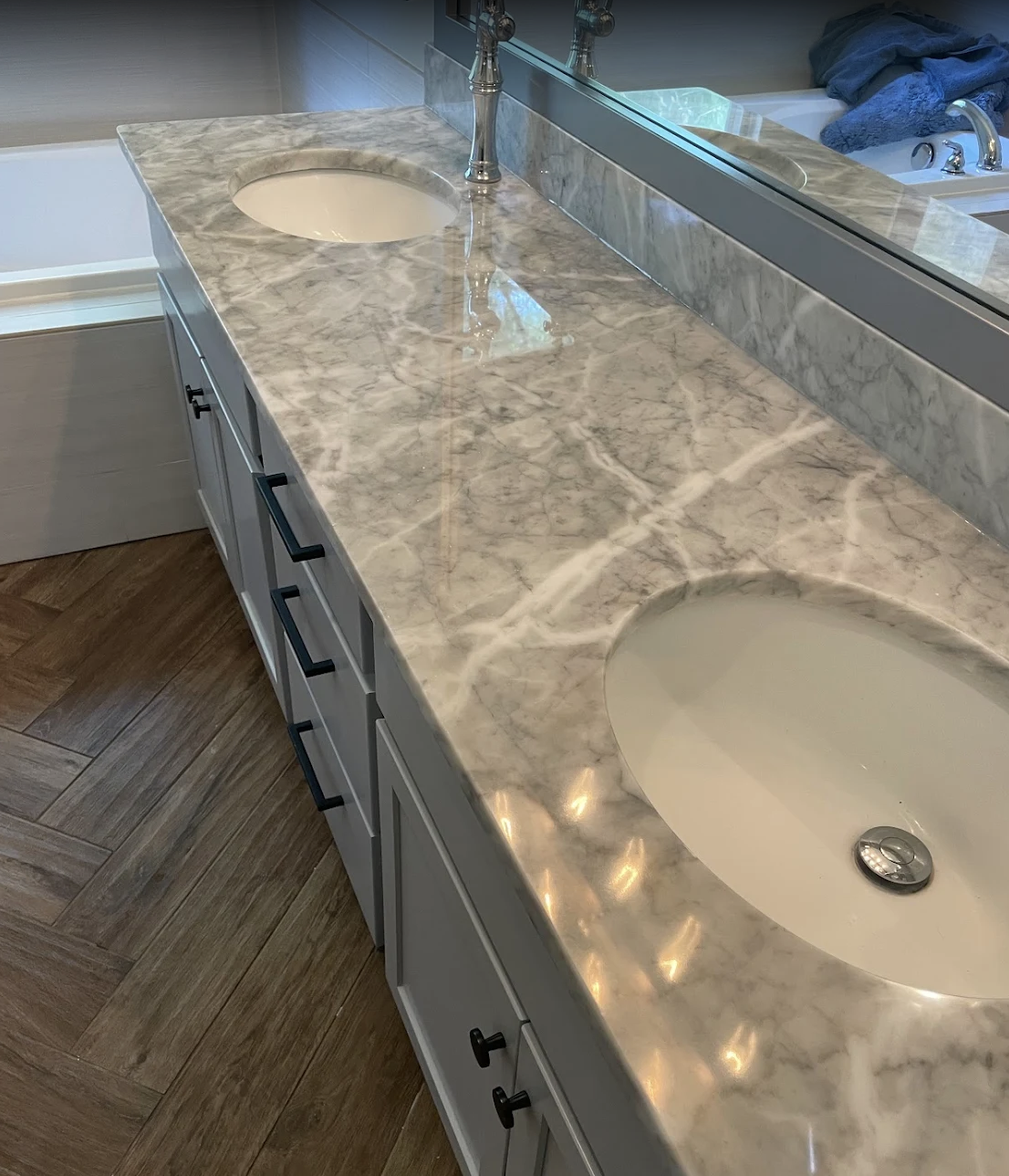 Most recently, Calvin refinished our marble bathroom countertop, which had some deep stains. He went above and beyond to restore the natural stone, and it now looks absolutely beautiful—we’re so pleased with the results!